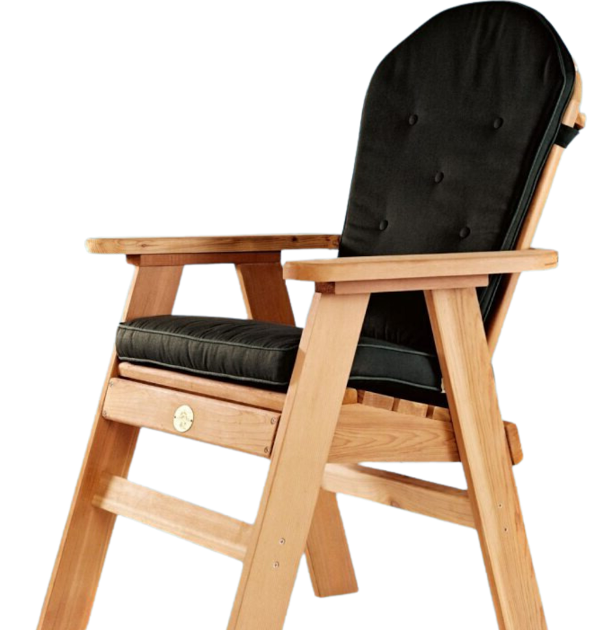 El resultado es una silla única y excepcionalmente cómoda. El secreto está en la barra de confort. Una tabla en la parte inferior del respaldo y la conexión entre el asiento y el respaldo. Además, el respaldo y el asiento están ligeramente curvados para adaptarse lo mejor posible a los contornos del cuerpo, optimizando así la comodidad del asiento. Las sillas Muskoka y Adirondack tienen respaldos y asientos rectos, lo que no facilita sentarse.